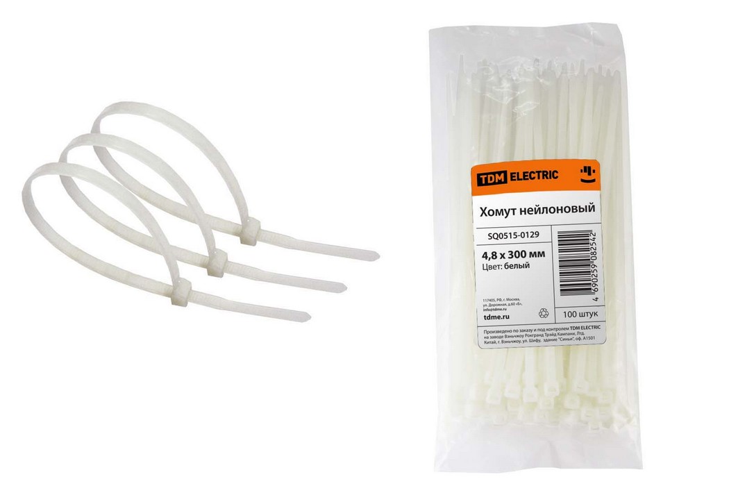 Хомут 4,8х300мм нейлон (белый) (100шт) TDM ELECTRIC SQ0515-0129