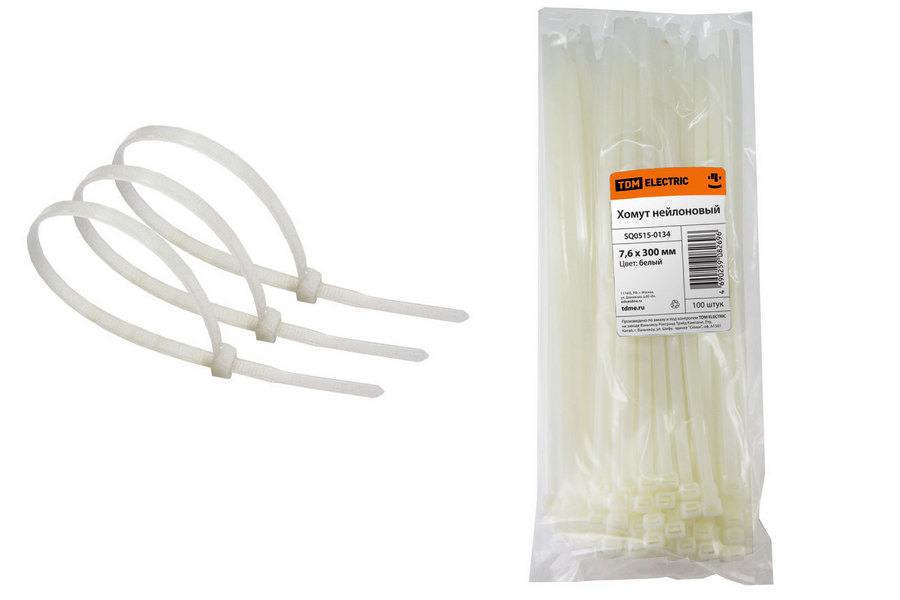 Хомут 7,6х300мм нейлон (белый) (100шт) TDM ELECTRIC SQ0515-0134