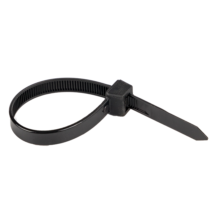 Описание Предназначен для увязки кабелей и проводов в пучок и монтажа кабельных линий и проводников. Ремешок самофиксирующийся, блокирующий механизм. Изготовлен из Nylon 6.6, устойчивого к старению, коррозии, воздействию солей, ультрафиолета, кислот, щелочей, спирта, бензина и масел. При производстве кабельных стяжек черного цвета добавляется угольный порошок, который является одним из наиболее эффективных стабилизаторов. Он улучшает физические свойства продукции в стойкости к погодным условиям и УФ-излучению (прямые солнечные лучи).