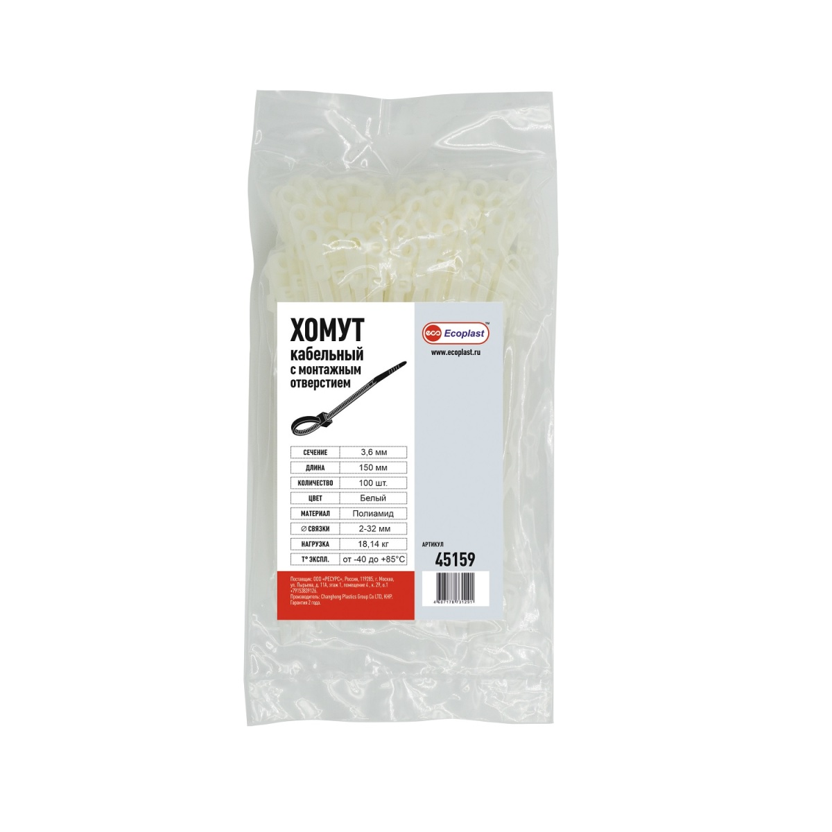 Полные технические характеристики Хомуты кабельные 3,6 х 150мм (1уп = 100шт) Экопласт Ecoplast 45159