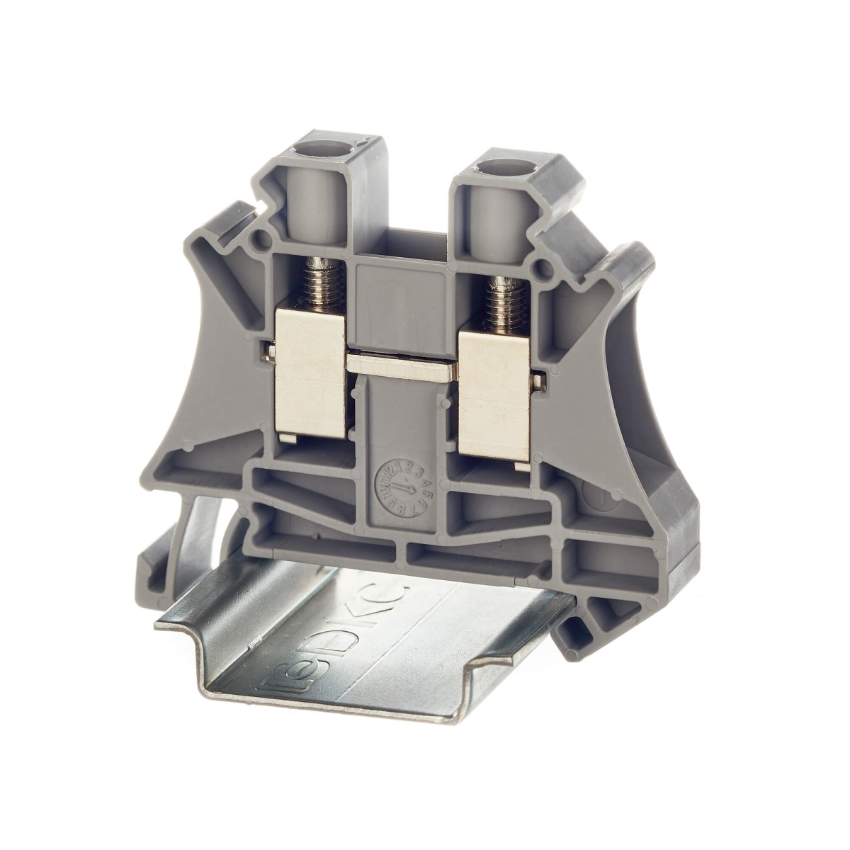 Наименование в каталоге Клемма проходная , винтовой зажим, 2 точки подключения, 10 кв.мм, серая