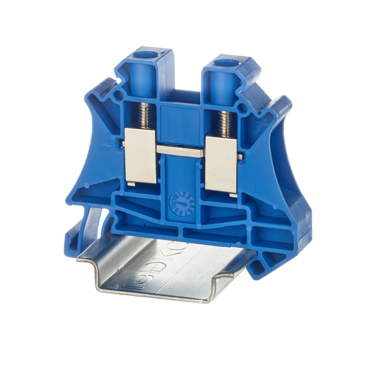 Клемма проходная, винтовой зажим, 2 точки подключения, 10 кв.мм, синяя