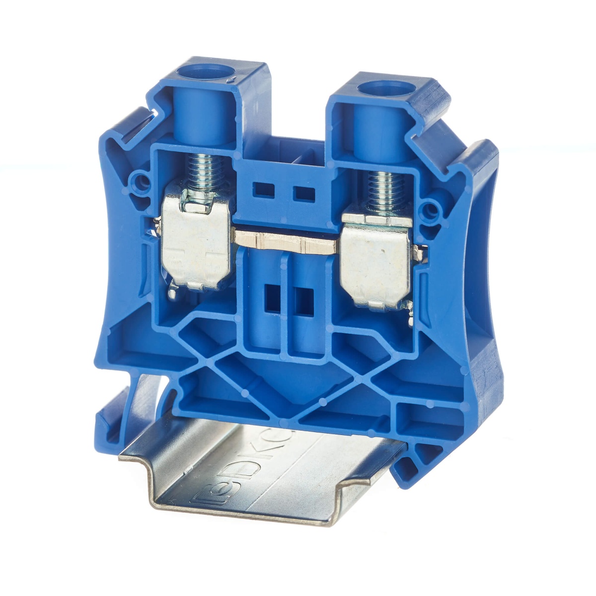 Клемма проходная, винтовой зажим, 2 точки подключения, 16 кв.мм, синяя