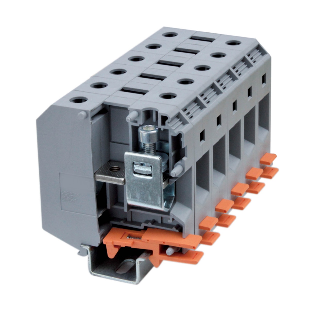 Клемма проходная, винтовой зажим, 2 точки подключения, 240 кв.мм, серая