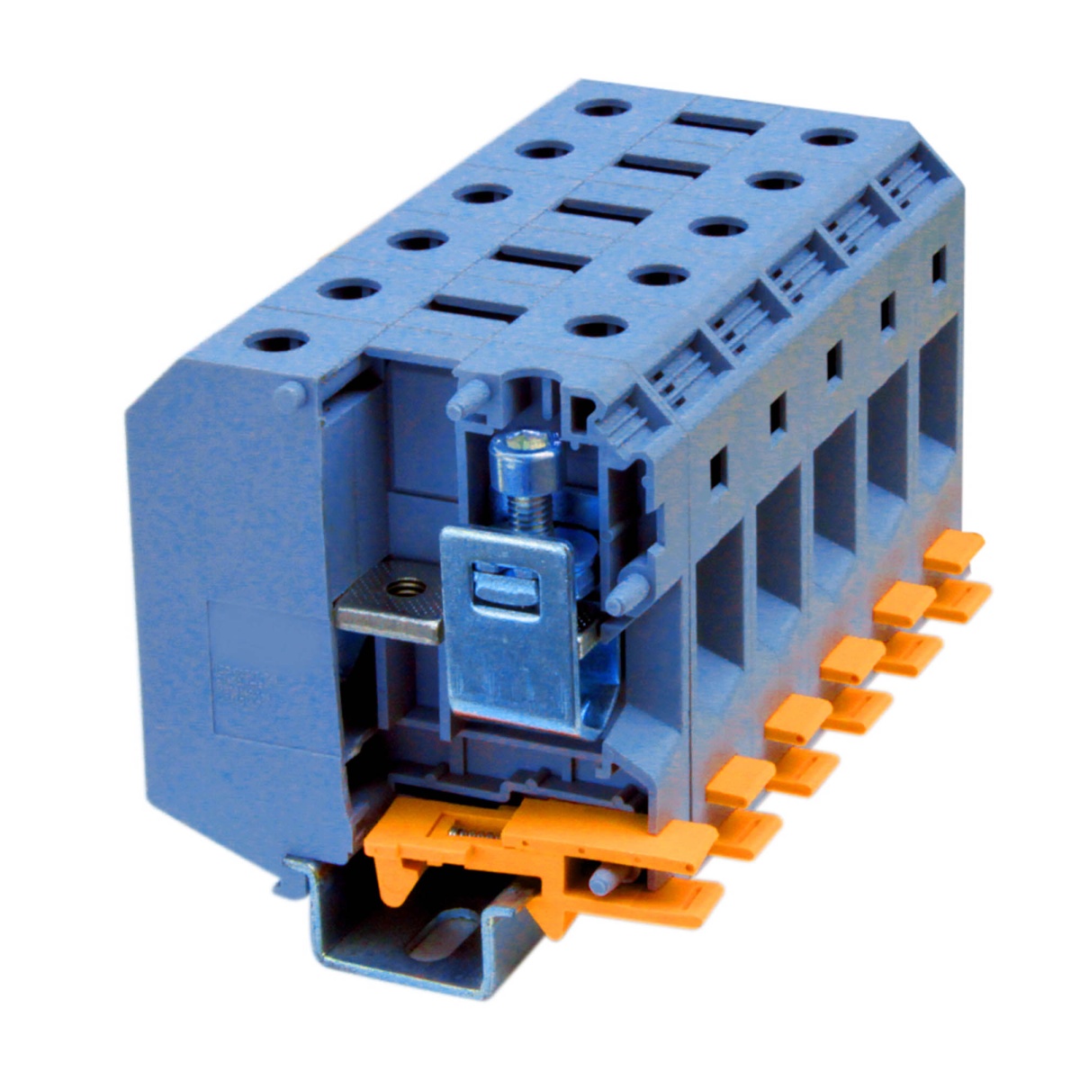 Клемма проходная, винтовой зажим, 2 точки подключения,  240 кв.мм, синяя