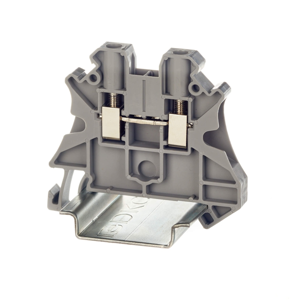 Клемма проходная, винтовой зажим, 2 точки подключения, 4 кв.мм, серая