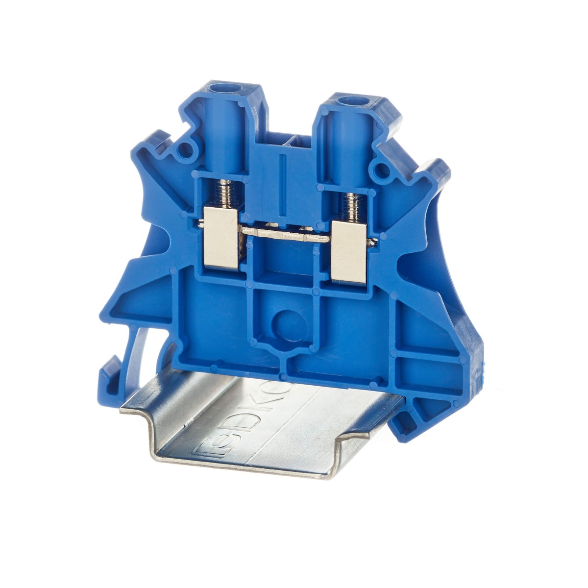 Наименование в каталоге Клемма проходная , винтовой зажим, 2 точки подключения, 4 кв.мм, синяя