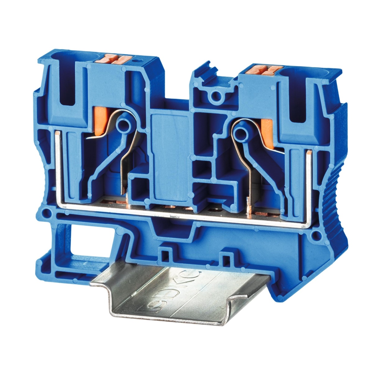 Наименование в каталоге Клемма проходная , зажим push-in, 2 точки подключения, 10 кв.мм, синяя
