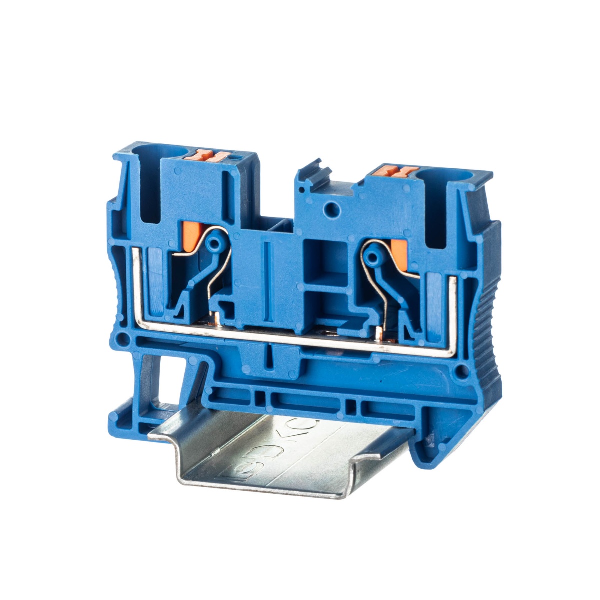 Наименование в каталоге Клемма проходная , зажим push-in, 2 точки подключения, 6 кв.мм, синяя