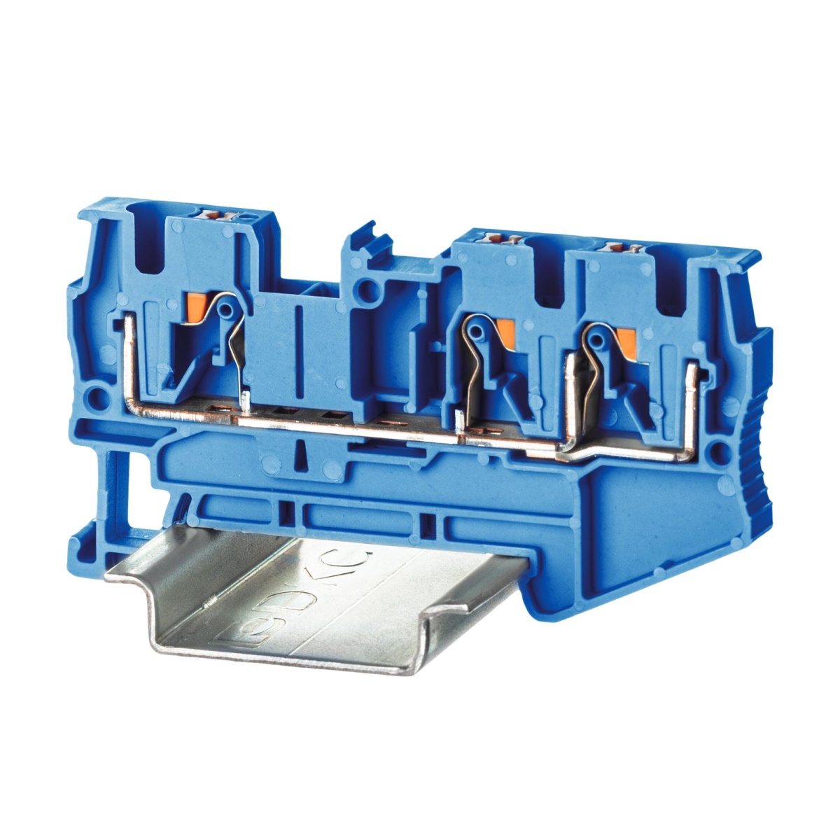 Наименование в каталоге Клемма проходная , зажим push-in, 3 точки подключения, 4 кв.мм, синяя