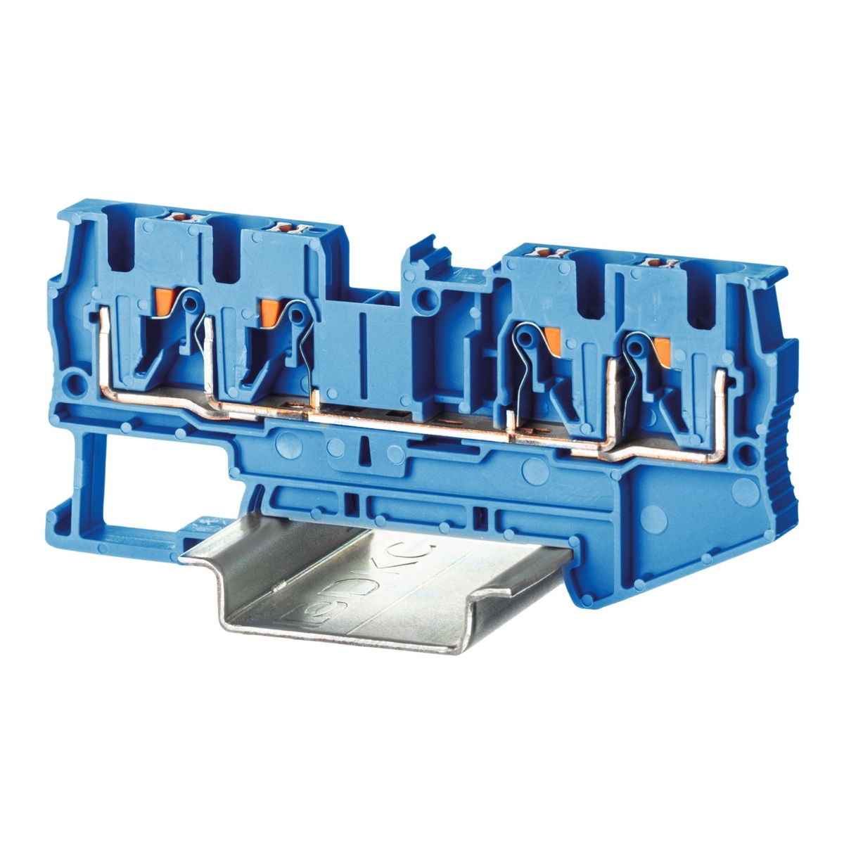 Наименование в каталоге Клемма проходная , зажим push-in, 4 точки подключения, 4 кв.мм, синяя