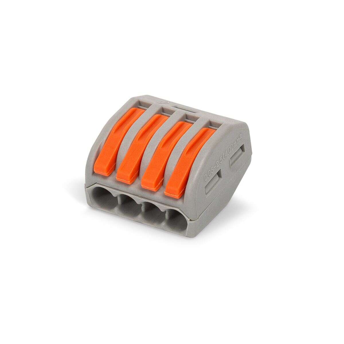 Описание Универсальные изолированные клеммы для подключения любых типов медных проводников - моножильных и многожильных тонкопроволочных. Зажим проводов в клемме осуществляется при помощи оранжевых рычагов. Наличие специального паза в корпусе клеммы для размещения рычага в закрытом положении надежно предотвращает случайное отсоединение проводника. Возможность измерения электрических параметров цепи без разбора и нарушения изоляции соединения. Безопасность и порядок в распределительной коробке. Максимальное напряжение - 450 В