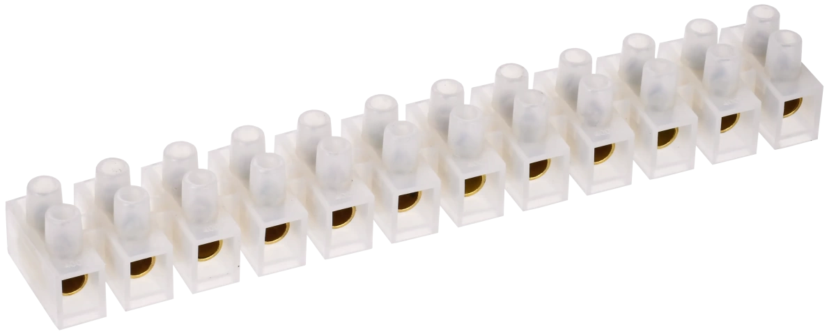 Описание Применяются для винтового соединения проводников, защищая провод от повреждения и исключая возможность замыкания на корпус электроустановки. Изоляционный каркас изготовлен из белого негорючего полистирола или прозрачного полиэтилена, клемма и винты - латунь.