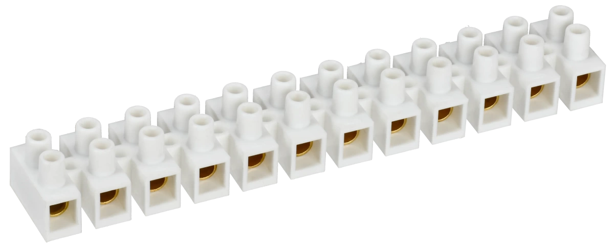 Описание Применяются для винтового соединения проводников, защищая провод от повреждения и исключая возможность замыкания на корпус электроустановки. Изоляционный каркас изготовлен из белого негорючего полистирола или прозрачного полиэтилена, клемма и винты - латунь.