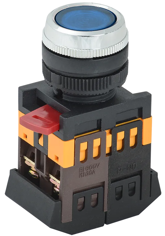 Наименование в каталоге Кнопка синяя ABLFS-22 1з+1р плоская с подсветкой неон 240В