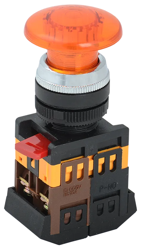 Кнопка AELA22 "Грибок" желтый d22мм неон/240В 1з+1р ИЭК
