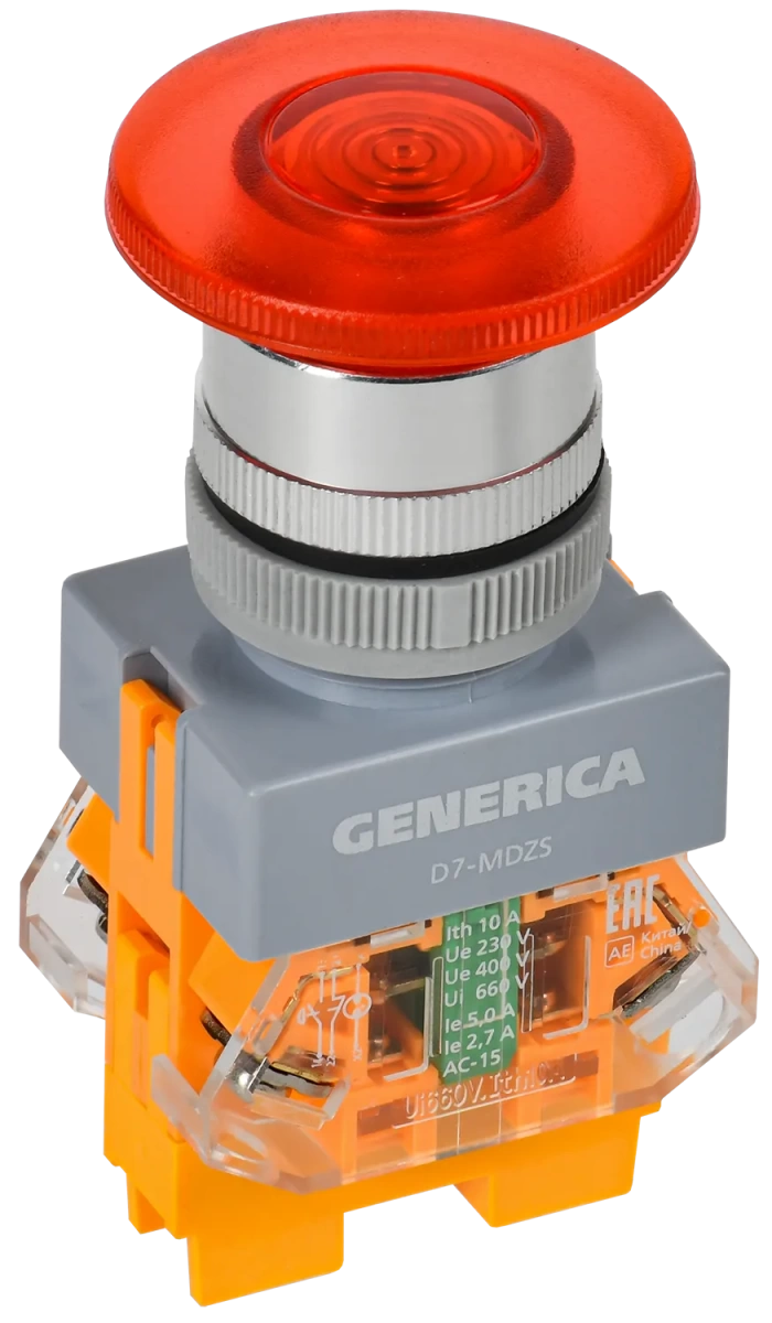 Наименование в каталоге Кнопка D7-MDZS Грибок d=22мм 1з+1р с п/ф кр. GENERICA