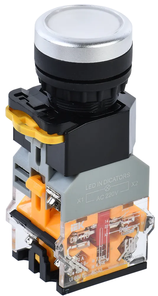 Полные технические характеристики Кнопка D8-11D d=22мм 1з+1р с подсветкой белая IEK (ИЭК) BBT30-11D-3-12-K01