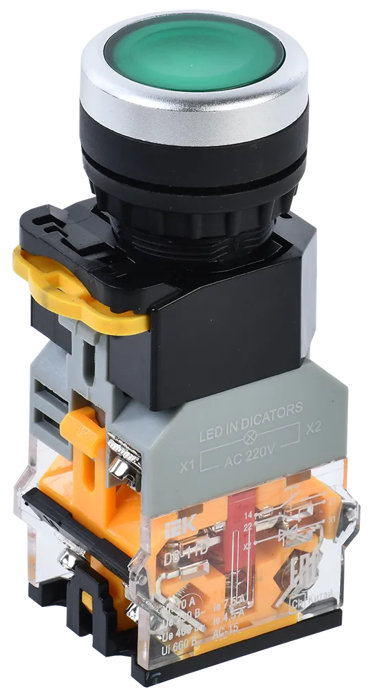 Кнопка D8-11D d=22мм 1з+1р с подсветкой зеленая IEK
