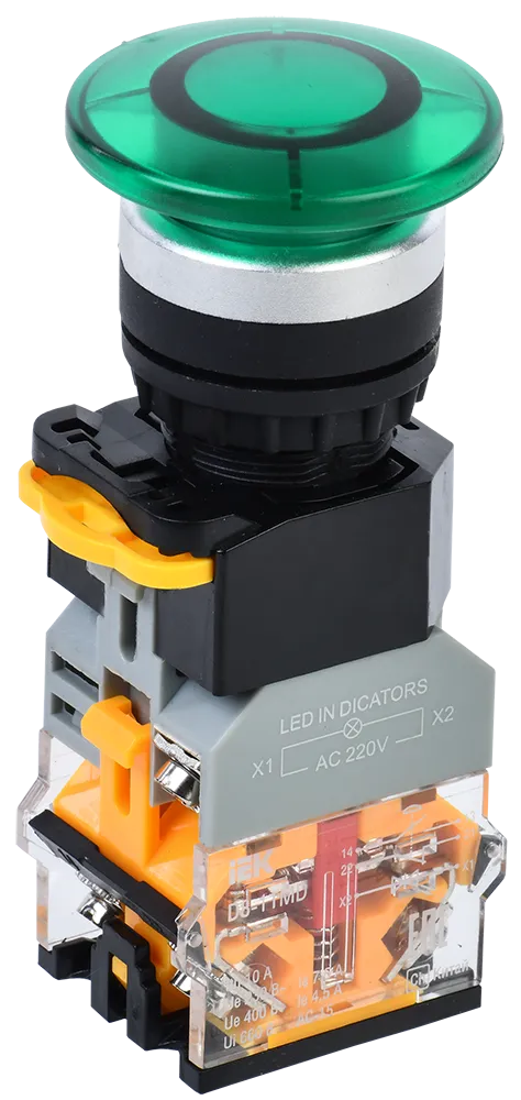 Кнопка D8-11MD "Грибок" d=22мм 1з+1р с подсвет. зеленая IEK