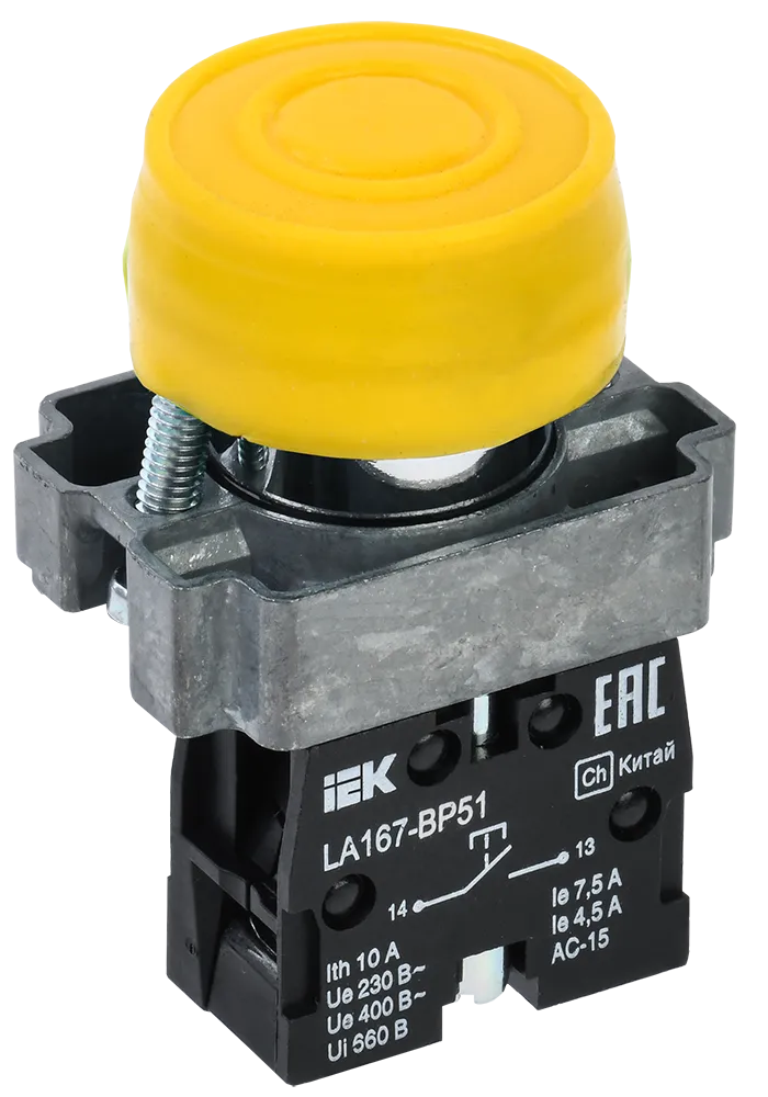 Кнопка LA167-BP51 d=22мм 1з желтая IEK (ИЭК) BBT20-BP51-1-22-67-K05