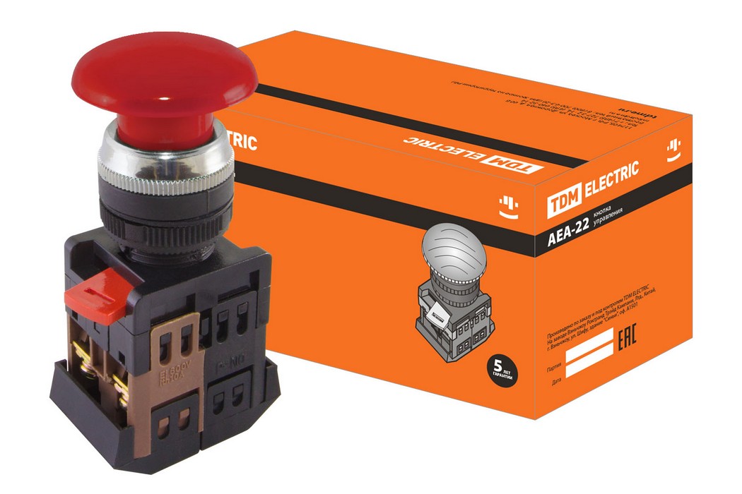 Кнопка AEА-22 Грибок красный d22мм 1з+1р TDM ELECTRIC SQ0704-0015