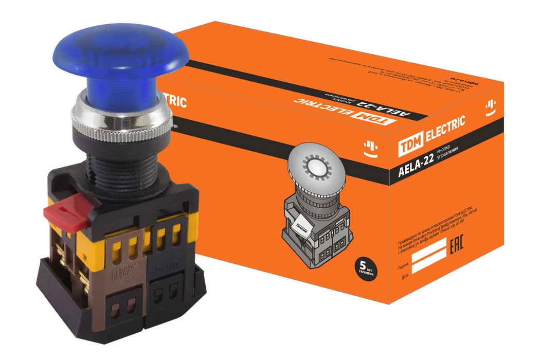 Полные технические характеристики Кнопка AELA-22 Грибок синий d22мм неон/230В 1з+1р TDM ELECTRIC SQ0704-0035