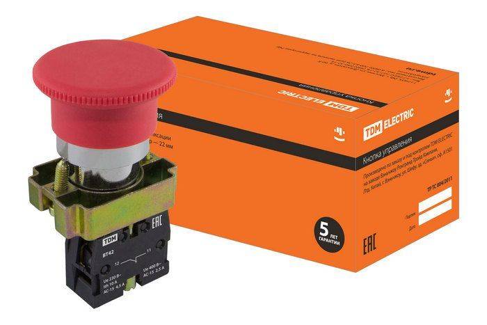 Полные технические характеристики Кнопка BТ42 Грибок аварийная с фиксацией красныйTDM TDM ELECTRIC SQ0704-0053