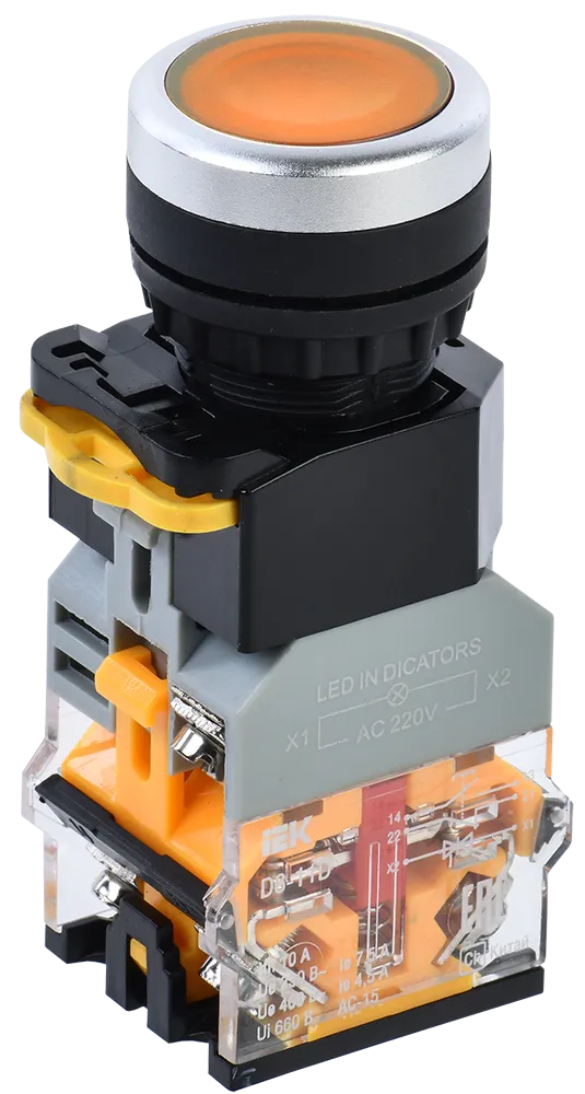 Кнопка D8-11D d=22мм 1з+1р с подсветкой желтая IEK (ИЭК) BBT30-11D-3-12-K05
