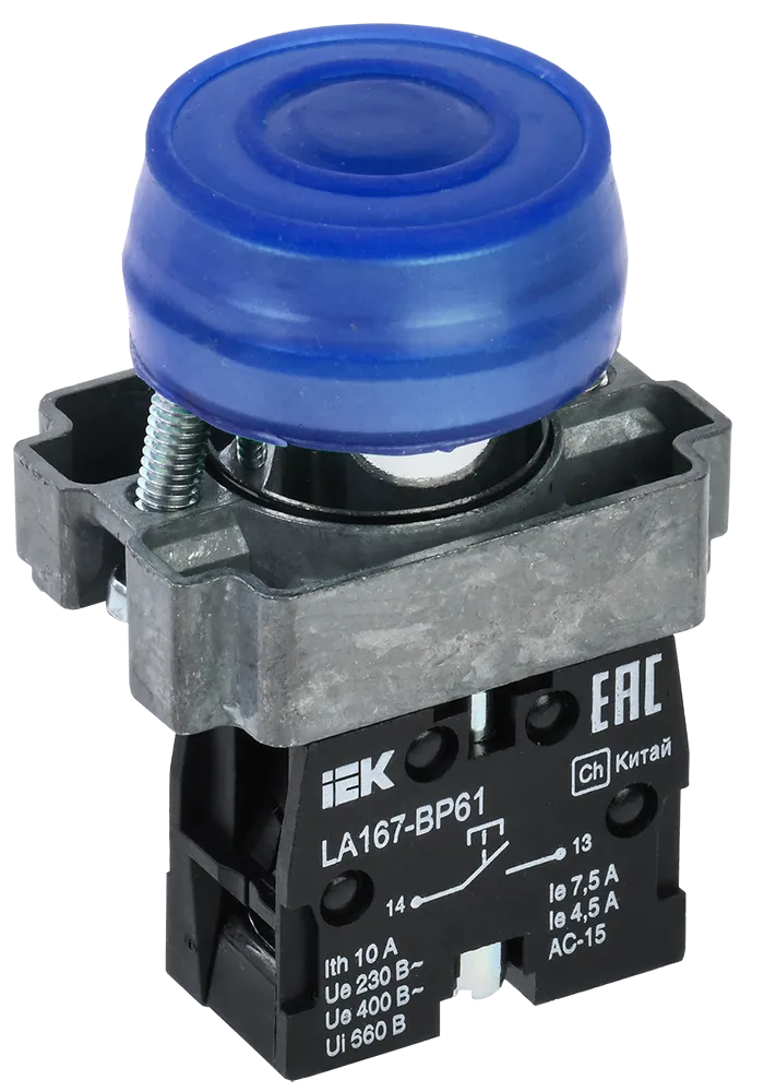 Кнопка LA167-BP61 d=22мм 1з синяя IEK (ИЭК) BBT20-BP61-1-22-67-K07