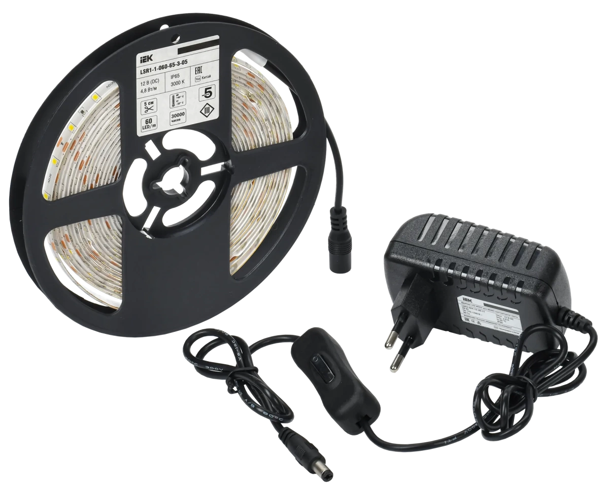 Комплект светодиодной подсветки Сделай сам (лента LED 5м LSR-2835WW60-4,8-IP65-12В + драйвер + выключатель) IEK IEK (ИЭК) LSR1-1-060-65-1-05-S1