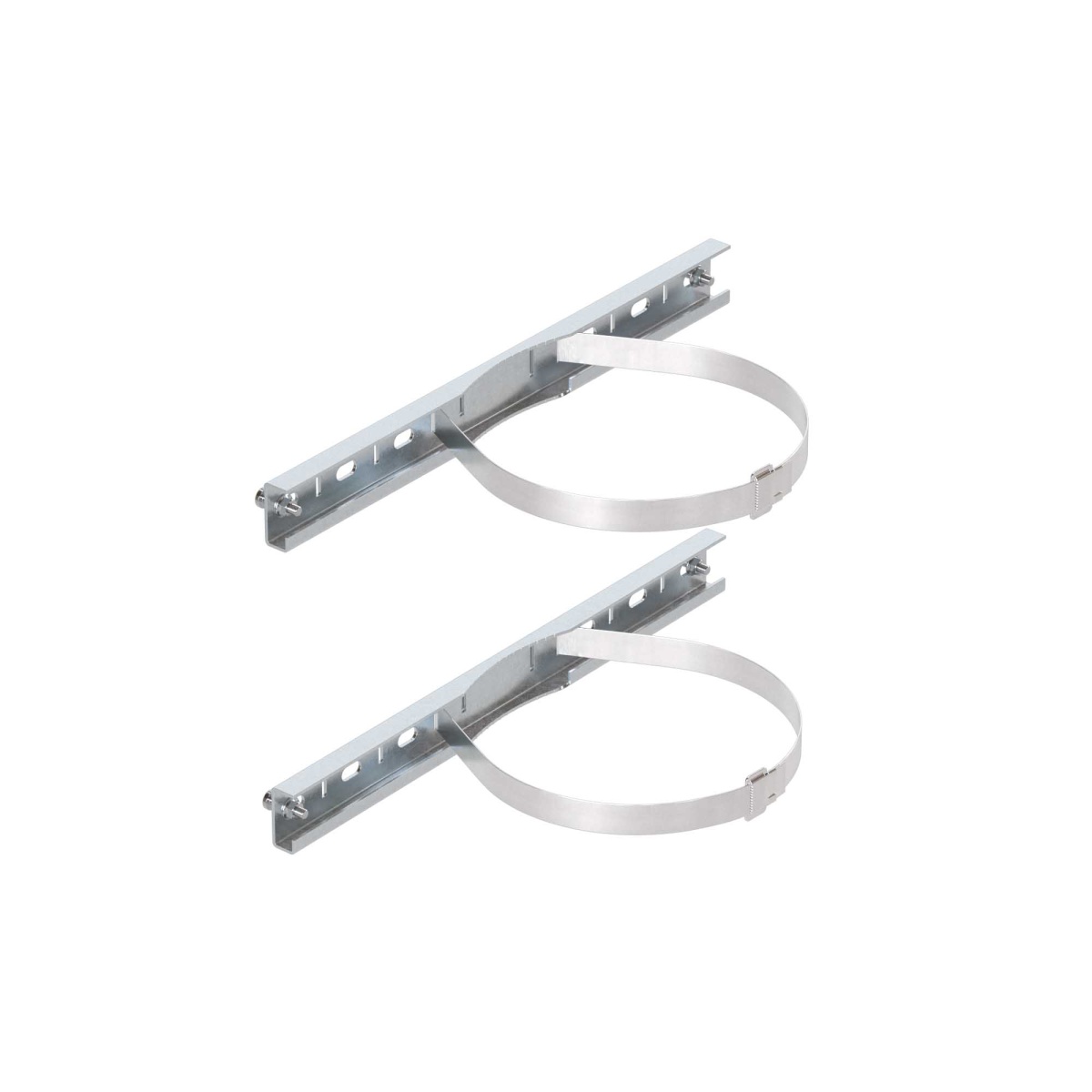 Описание Комплект для крепления корпусов ST, STX, STE, STEX, STH, SDE, RAM box шириной 200 мм на опору. Крепежные профили изготавливаются из оцинкованной стали толщиной 2 мм, стяжные хомуты – из нержавеющей стали AISI 304. Максимальная статическая нагрузка на 2 профиля – 300 кг, подходят для круглых опор диаметром 40...195 мм или квадратных опор со стороной 60...165 мм. В комплект поставки входят: 2 профиля, 2 стяжных хомута, 2 замка для фиксации хомутов.