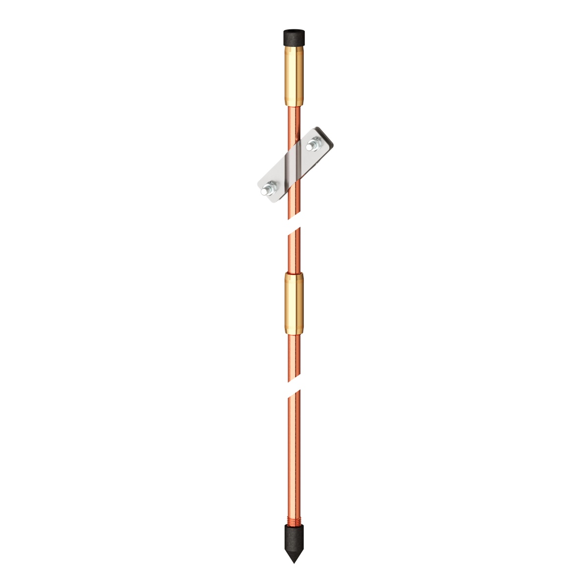 Описание Назначение омедненного вертикального заземлителя - организация заземления токоотводов молниезащиты или электрического оборудования. Общая длина - 3000 мм, материал - омедненная сталь, диаметр - 14, 2 мм. Секции (1500 мм) соединяются с помощью вкручиваемых соединительных муфт. Комплект включает - вертикальный заземлитель, 1500 мм – 2 шт, соединитель проводника – 1 шт, соединительная муфта– 2 шт, наконечник – 1 шт, забивной винт– 1 шт.