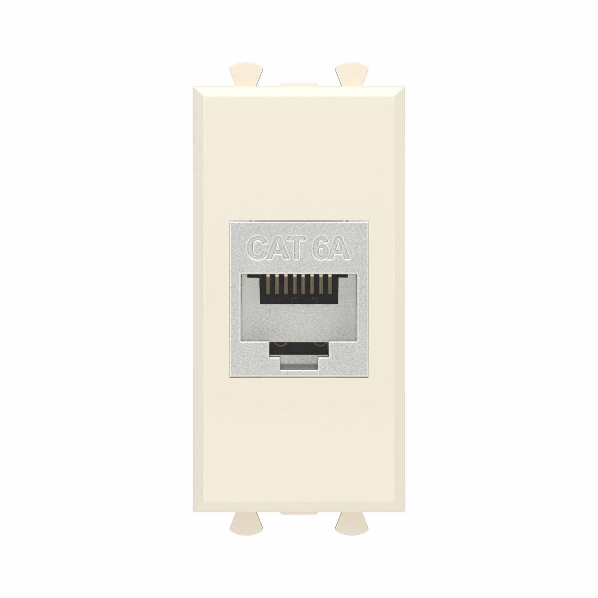 Компьютерная розетка RJ-45 без шторки модульная, кат.6А экранированная, "Avanti", "Ванильная дымка", 1 модуль
