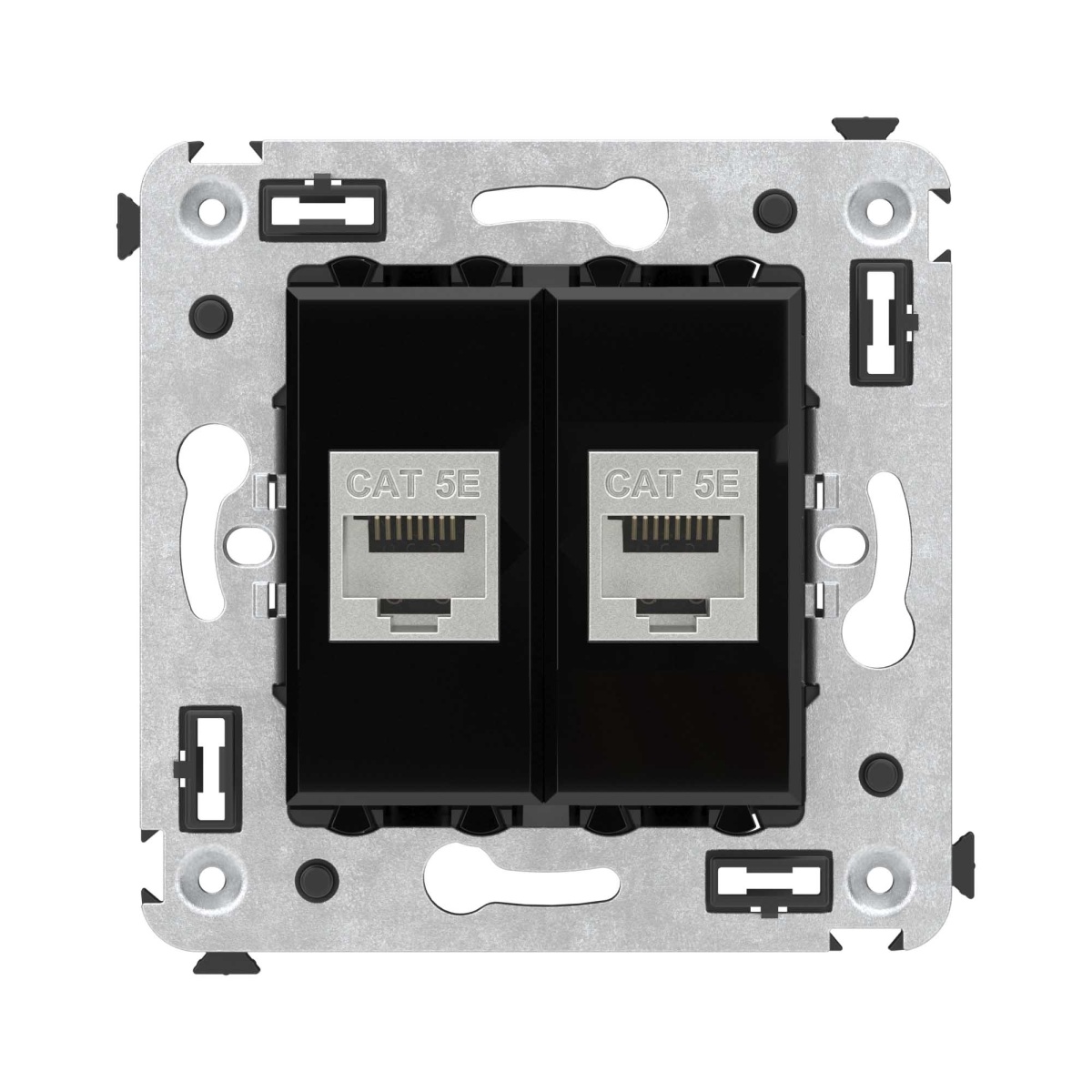 Компьютерная розетка RJ-45 без шторки в стену, кат.5e двойная экранированная, "Avanti", "Черный квадрат"