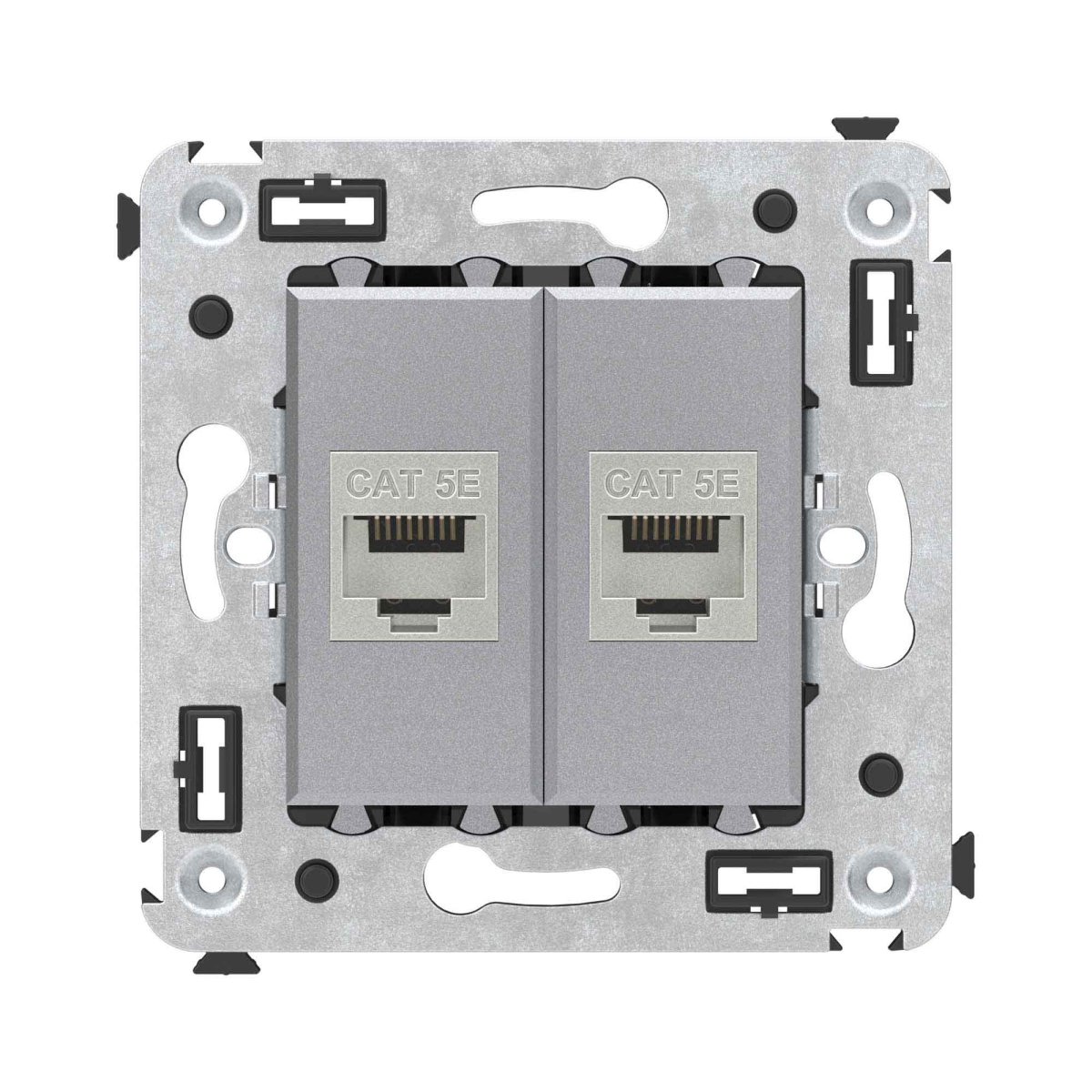 Компьютерная розетка RJ-45 без шторки в стену, кат.5e двойная экранированная, "Avanti", "Закаленная сталь"