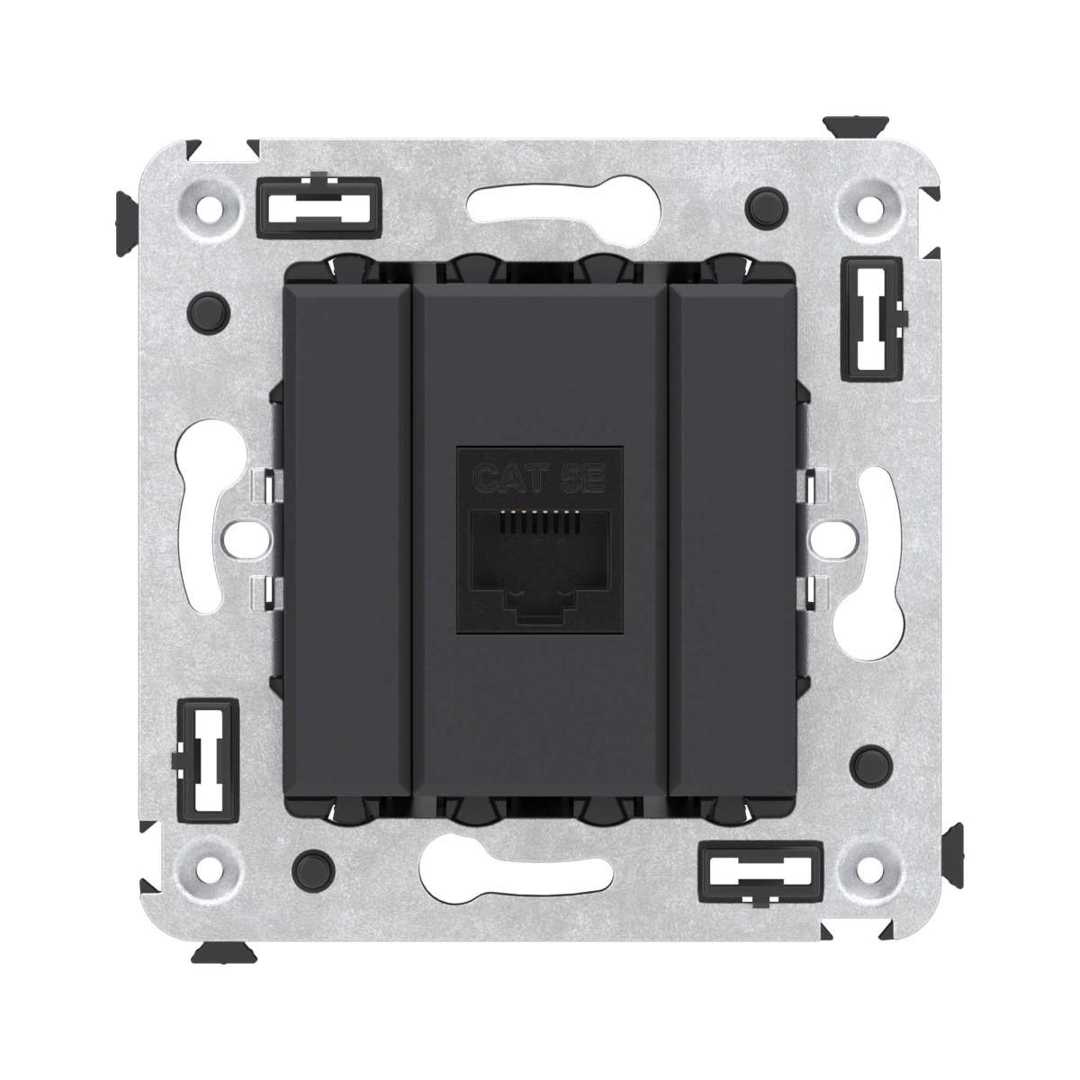 Компьютерная розетка RJ-45 без шторки в стену, кат.5е одинарная, "Avanti", "Черный матовый"