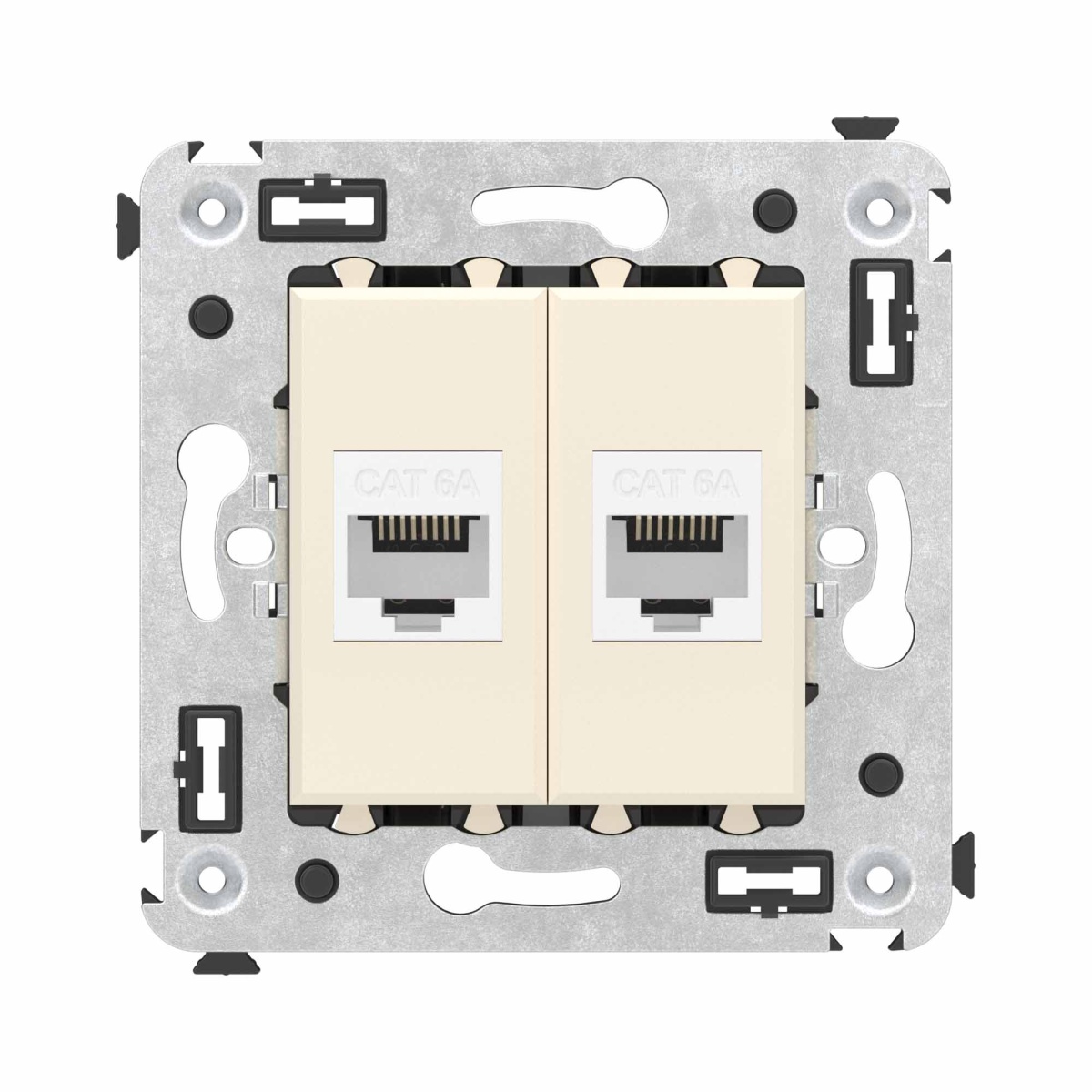 Компьютерная розетка RJ-45 без шторки в стену, кат.6А двойная, "Avanti", "Ванильная дымка"