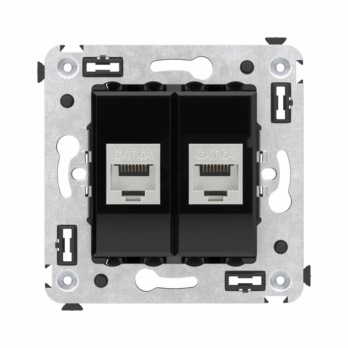 Наименование в каталоге Avanti Компьютерная розетка RJ-45 без шторки в стену, кат.6А двойная экранированная, Черный квадрат