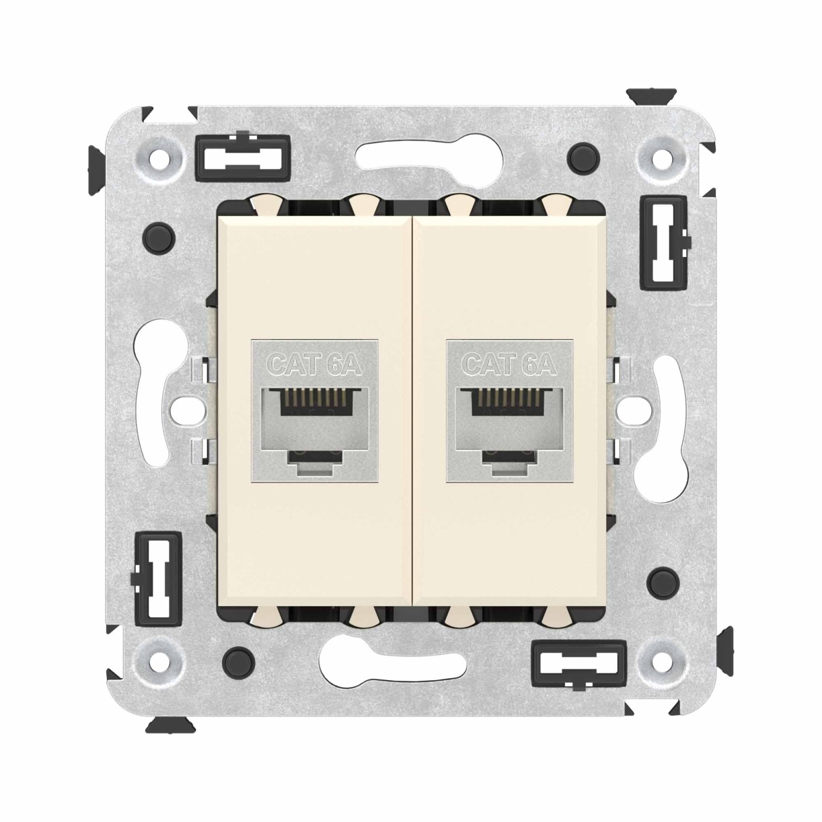 Компьютерная розетка RJ-45 без шторки в стену, кат.6А двойная экранированная, "Avanti", "Ванильная дымка"