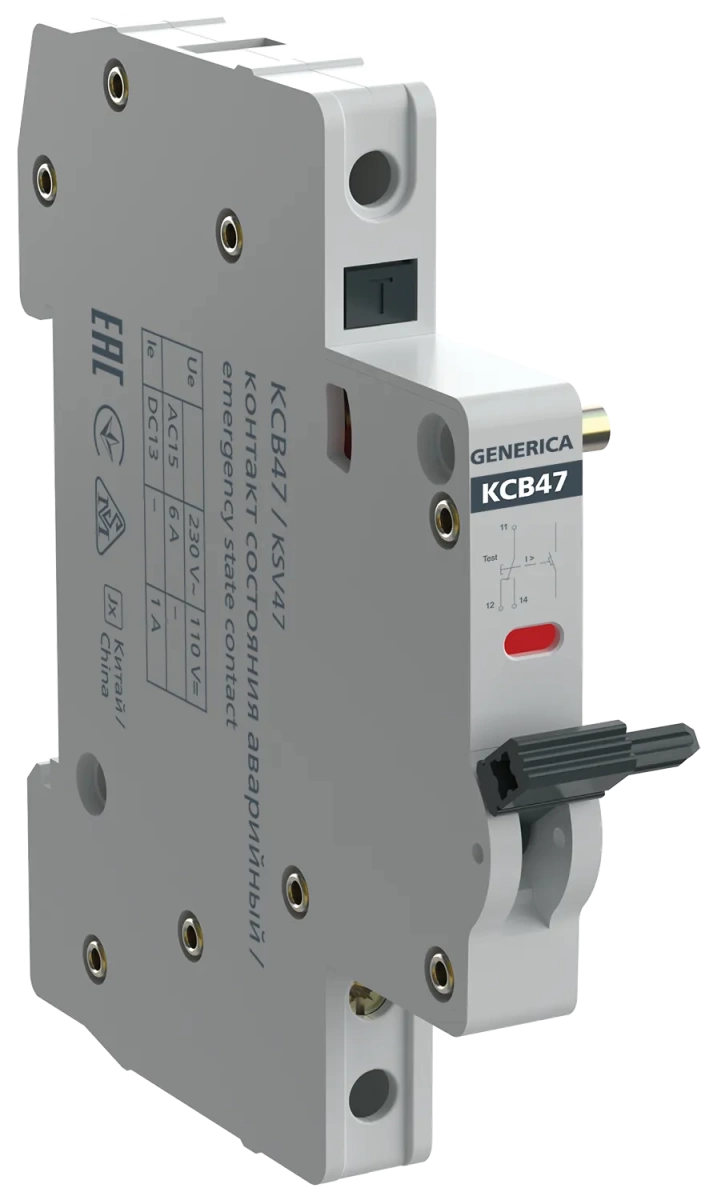 Наименование в каталоге Контакт состояния аварийный КСВ47 на DIN-рейку GENERICA