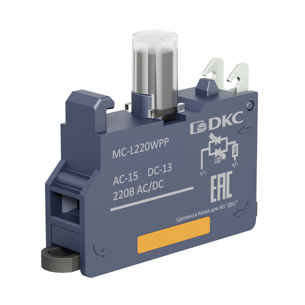 Контактный блок с клеммным безвинтовым зажимом со светодиодом на 220В, белый DKC (ДКС) MC-L220WPP
