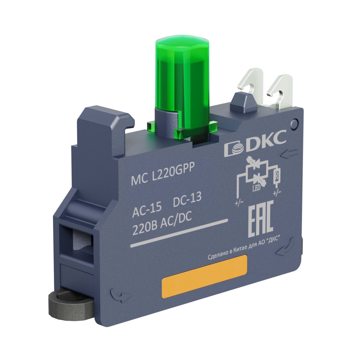 Контактный блок с клеммным безвинтовым зажимом со светодиодом на 220В, зеленый DKC (ДКС) MC-L220GPP