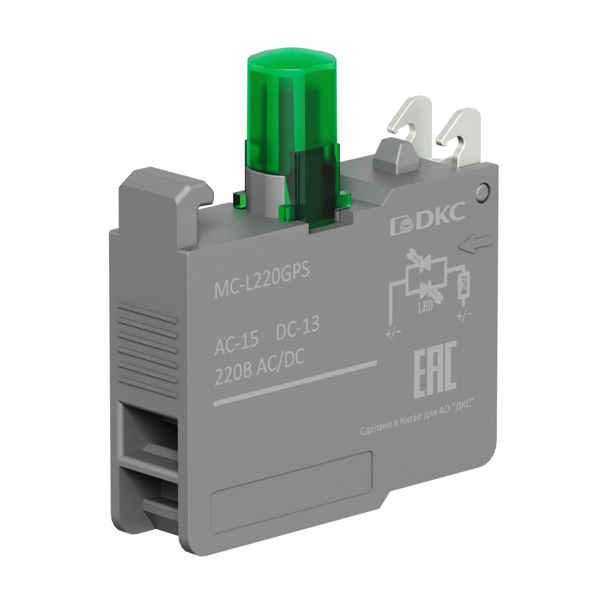 Контактный блок с клеммными зажимами под винт со светодиодом на 220В, зеленый DKC (ДКС) MC-L220GPS