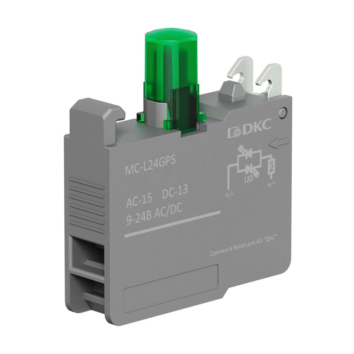 Контактный блок с клеммными зажимами под винт со светодиодом на 9-24В, зеленый DKC (ДКС) MC-L24GPS