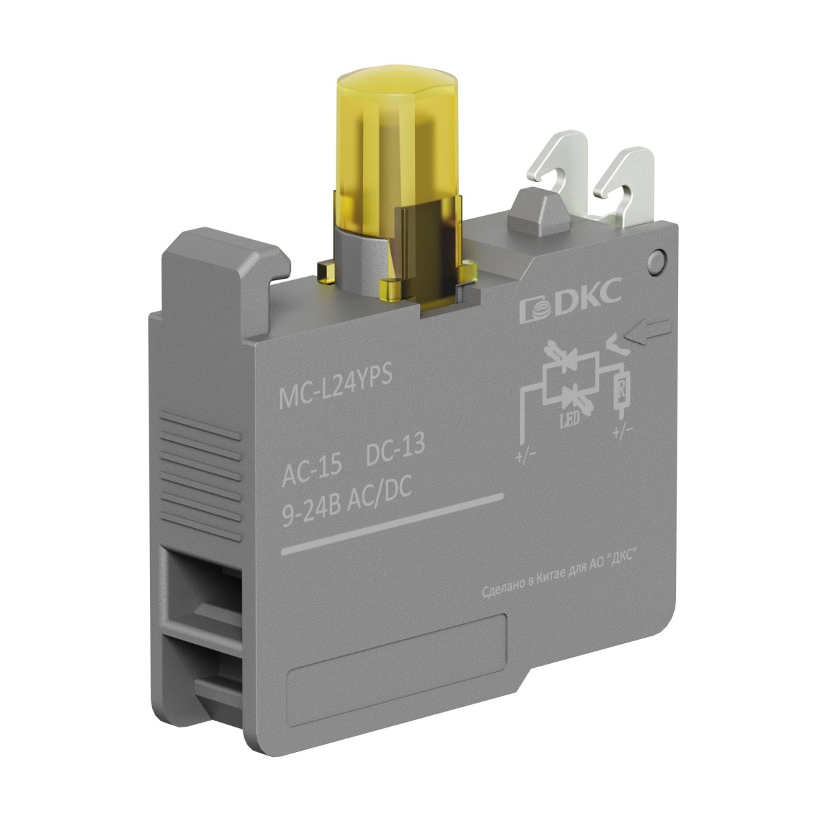 Контактный блок с клеммными зажимами под винт со светодиодом на 9-24В, жёлтый DKC (ДКС) MC-L24YPS