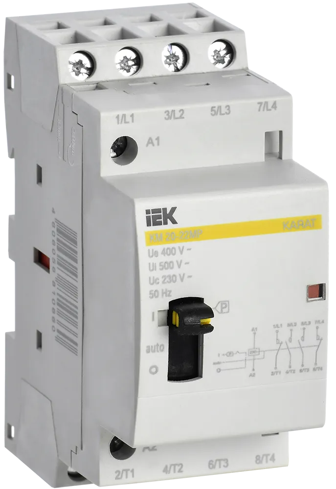 Полные технические характеристики Контактор модульный с ручным упр. КМ20-22МР AC KARAT IEK (ИЭК) MKK12-20-22