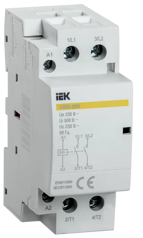 Описание Контакторы модульные типа КМ предназначены для применения в сетях переменного тока напряжением до 400 В частоты 50 Гц и служат для коммутации слабоиндуктивных нагрузок с номинальным током до 63 А. Используются для автоматизации и управления различных технологических процессов. Преимущества, Универсальное питание катушки управления - переменный или постоянный ток. Наличие визуальной индикации состояния главных контактов. Пониженный электромагнитный фон благодаря использованию магнитной системы на постоянном токе. Высокая механическая и электрическая износостойкость. Экономия энергии (ток удержания в 5 раз меньше пускового). Высокое быстродействие (включение - 20 мс, отключение - 30 мс). Мостиковые контакты обеспечивают двойной разрыв при размыкании главных контактов. Низкий уровень шума при срабатывании. Соответствие требованиям ГОСТ Р 51731-2001.