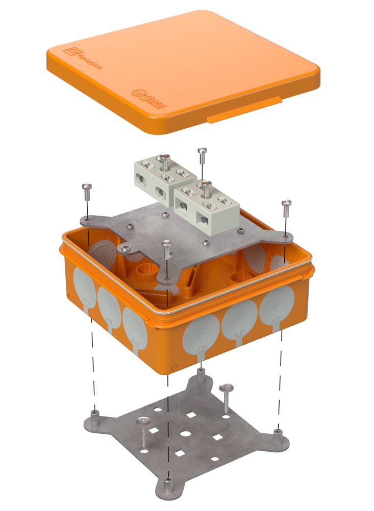 Описание ЭМК двухкомпонентные огнестойкие сочетают в себе надежность и высокую скорость монтажа. Они применяются при прокладке систем противопожарной безопасности по различным поверхностям зданий и сооружений, необходимы для механической защиты мест соединения проводов и кабелей, а так же для защиты от проникновения пыли, влаги и посторонних предметов. Лаконичный дизайн способствует эстетичному монтажу проводки, а мембраны позволяют увеличить скорость монтажа (по сравнению со скоростью при использовании ЭМК с гермовводами). Материал изготовления коробок является безгалогенным, что позволяет использовать изделие в общественных местах с высоким скоплением людей. Коробка имеет монолитное исполнение с уплотнителем и мембранами за счёт чего достигается высокая степень защиты IP66.