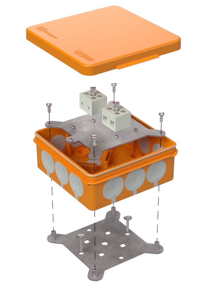 Описание ЭМК двухкомпонентные огнестойкие сочетают в себе надежность и высокую скорость монтажа. Они применяются при прокладке систем противопожарной безопасности по различным поверхностям зданий и сооружений, необходимы для механической защиты мест соединения проводов и кабелей, а так же для защиты от проникновения пыли, влаги и посторонних предметов. Лаконичный дизайн способствует эстетичному монтажу проводки, а мембраны позволяют увеличить скорость монтажа (по сравнению со скоростью при использовании ЭМК с гермовводами). Материал изготовления коробок является безгалогенным, что позволяет использовать изделие в общественных местах с высоким скоплением людей. Коробка имеет монолитное исполнение с уплотнителем и мембранами за счёт чего достигается высокая степень защиты IP66.